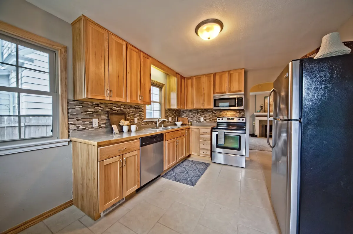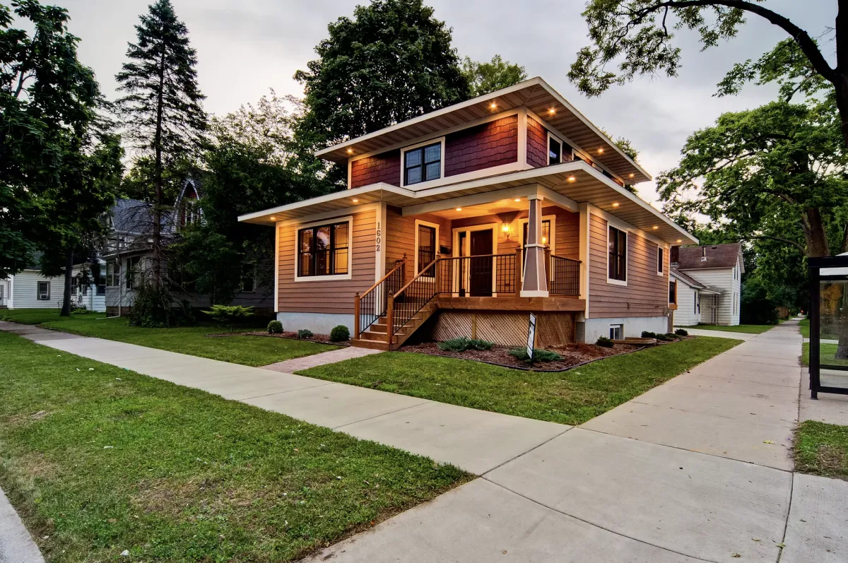 This incredible home is brand new and boasts more features than we can list! 5 bed/4 baths, Two Fireplaces, Hardwood floors, a cook's dream kitchen, luxurious master suite! Along with three egress windows in the basement, there is soo much long lasting value in this home! The Kitchen includes all brand new stainless steel appliances, solid surface countertops, glazed white cabinetry, and a beautiful tile backsplash. A sweet front porch and lovely back porch make this home look even more panoramic. Move-in-ready home is built to last. A professionally landscaped yard is surrounded by tasteful landscaping. The house exterior is painted a rich tan with off white trim, which is nicely complimented by the burgundy shakes. The garage is a detached, insulated two and a half car garage. The house is comprised of two floors and a finished basement. The first floor holds the kitchen and adjoining, dining, and living rooms as well as a full bath and a bedroom. The kitchen boasts solid surface counter tops and stainless steel appliances. Hardwood floors cover the entire main floor. The master suite as well as another bedroom with an attached bathroom are upstairs. The master suite includes a full bath, a walk in closet, and an office. The master bedroom as well as the entire second floor features hardwood floors. The basement features a family room, two bedrooms, a laundry room, a dry bar, and a full bathroom. Lot: 5,227 sqft